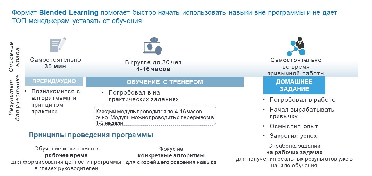 - совмещение мощной теоретической базы (автор 2 книг, более 30 статей), и обширной практикой (более 25 000 обученных руководителей, более 230 со-настроенных команд)